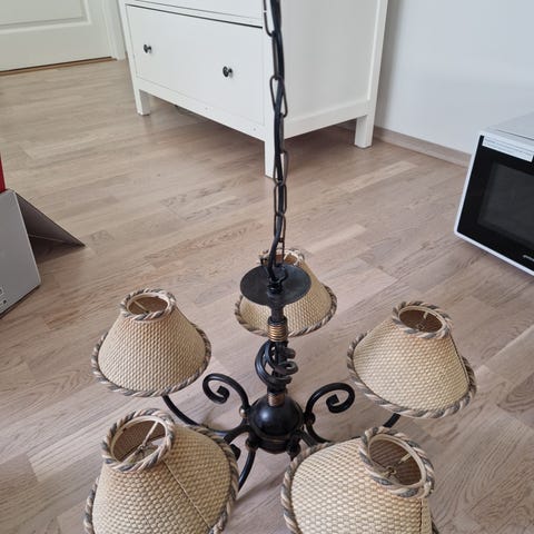 De originale sisal‑skjermene gir et varmt, stemningsfullt lys – og kombinasjonen av materialer gjør lampen både karaktersterk og tidløst elegant.