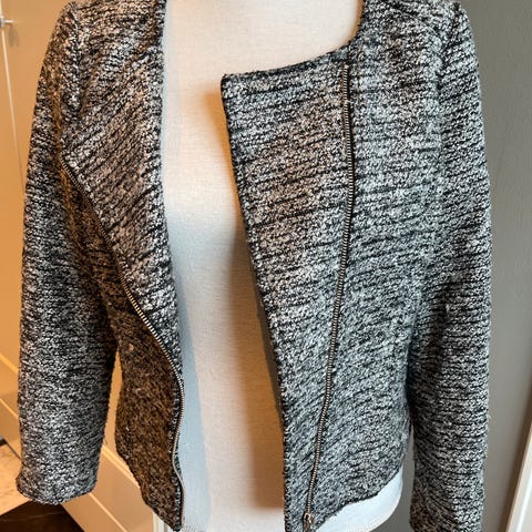 H&M Hennes Collection lang dresjakke i størrelse 40. Farge: grå.