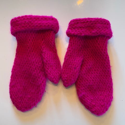 Ullvanter i mørk rosa. Brukt kun en gang, meget pent behandlet.