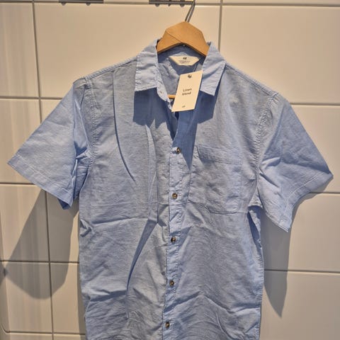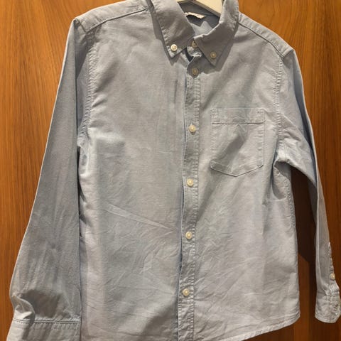 En klassisk blå Oxford-bomullsskjorte med krage med knapper og brystlomme.