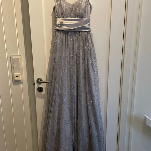 Kjempefin ballkjole som er brukt 2 ganger, den er mørk lilla og har stropper men kan også brukers uten.