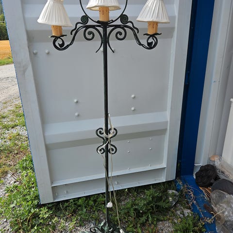 Antar den er fra tidlig 1900. Lampa er i god stand. Flotte støpte deler i bronse / messing, så det er en tung lampe. Den har vært i bruk til nå. Generasjons-skifte. Ledninger ser «nyere» ut, så de har nok blitt skiftet ut.