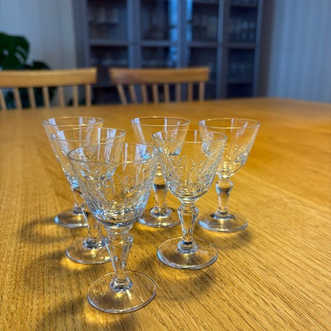 7 gamle Betzy drammeglass (6,5 cm. høye) fra Hadeland. Alle glassene er blanke og fine og uten nagg. Ønsker bud over kr. 60,- per stykke. Hentes i Tønsberg eller pakkes godt ig sendes for kr. 70,- inkl. sporing og forsikring