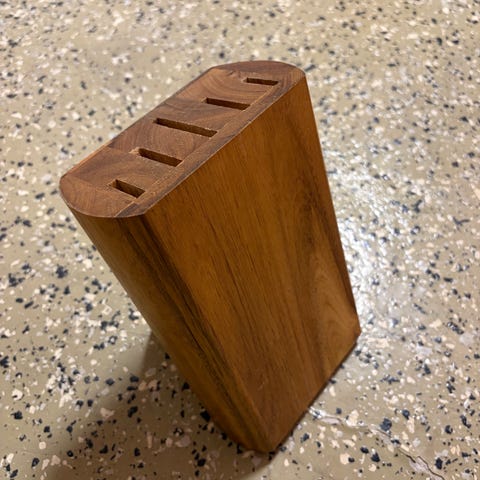 Selger en knivblokk / knivstativ med fleksibel plass til større og mindre kniver.