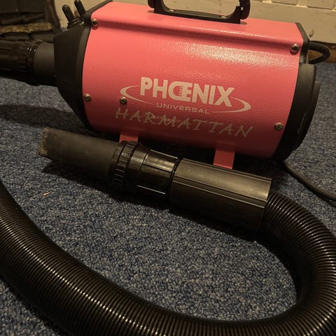 Flott ekstremt sterk hundeføner, hundeblåser som blåser alt vekk av smuss, sand, vann og hår. Denne er i 2 trinn så en kan tilpasse ønsket styrke. Har avtagbart vaskbart filter. Føneren har over 2 meter slange. Vært veldig glad i denne. Har bruksmerker etter bruk, men mye bruk igjen. Har alltid fungert superbra og er testet og klargjort. Se bilder for tilstand. Selges som forevist. Må hentes.