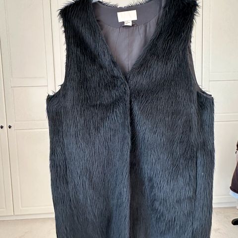 Nydelig kanin pels i str L kjempefin og tøff med to lommer, brukt to ganger hekter så du kan lukke den,. Kan sende mot frakt. Selges laaaang under pris.hentes her eller sendes mot porto.