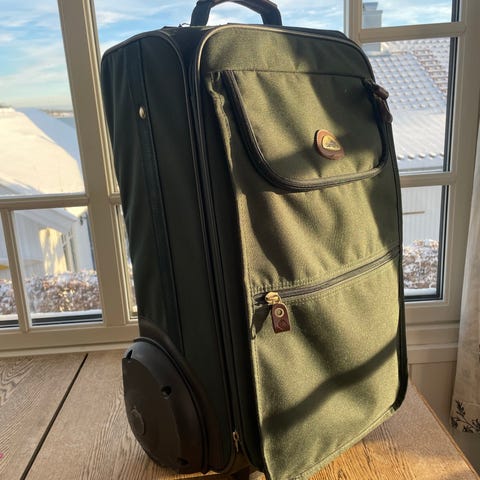 Reis med koffert ingen andre har. Crumpler (eksklusiv australsk merke kjent for solide produkter) med myk topp, Nesten ikke brukt, framstår som så godt som ny. To solide hjul, lett å trille, også på grus. To store lommer på toppen, en fra hver side.