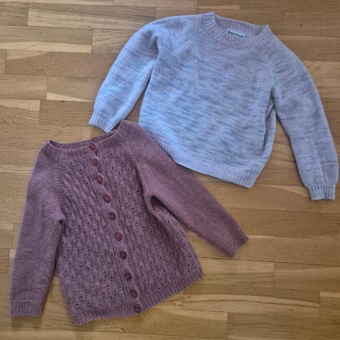 Strikket sett med genser og skjørt fra kolleksjonen til Skappel og Tone Damli. Nydelig lys blå farge, jeg synes fargen blir grå på mine bilder selv om dette er lyseblått. Brukt en gang før det ble fravokst, ingen anmerkninger. Strikket i Viking Camel garn, det består av 78% underull fra kamel og 22% nylon så er både mykt og holdbart. Kan vaskes på ullprogram i maskin.