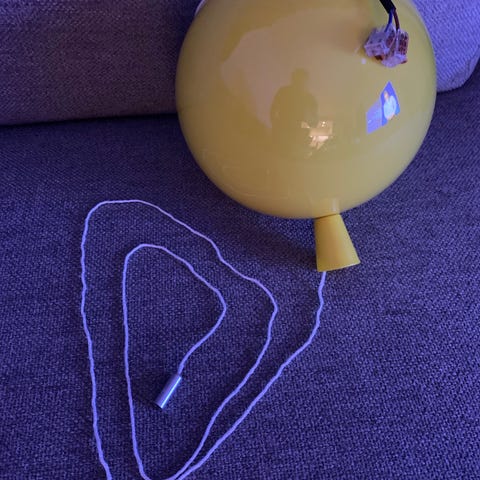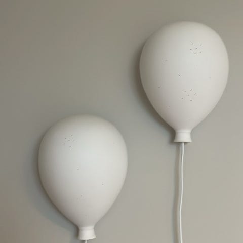 Kule luftballonglamper! Disse ble litt for store for vårt lille barnerom. ca 40 cm i diameter og 40 cm i lengde når de henger ned. Ledning følger ikke med. 100 kr for begge to. #lamper #barnerom #luftballong #lampe #interiør