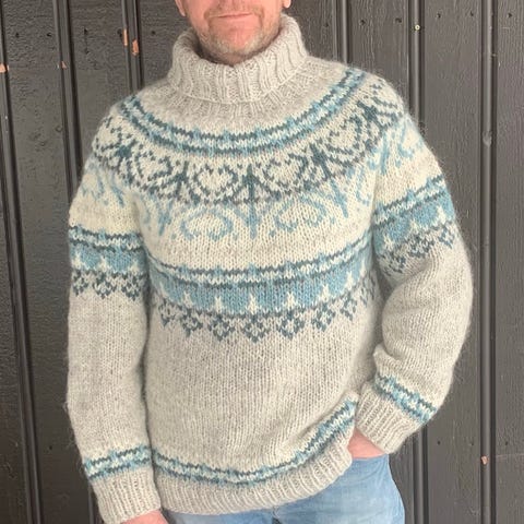 Fint brukt ullgenser med mønster i str. L