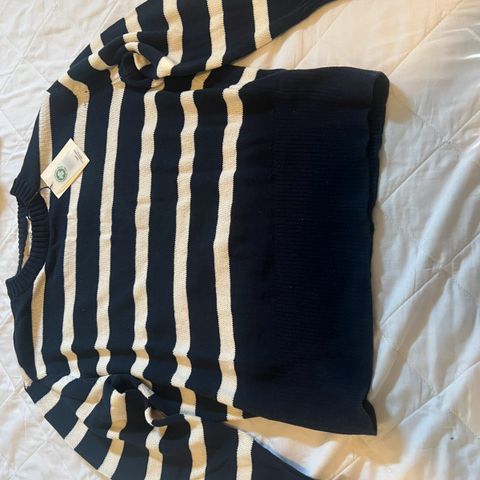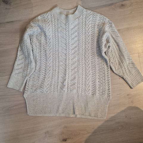 KANGOL strikkegenser. Vanskelig å si hvilken størrelse den er i da lappene er klippet av den, men den er relativt stor så i alle fall en L- XL. Kan brukes av både menn og kvinner. Den er relativt godt brukt på den måten at den har nupper spesielt nederst på genseren, men det er ikke andre bruksmerker på den. Kan både hentes og sendes :-).