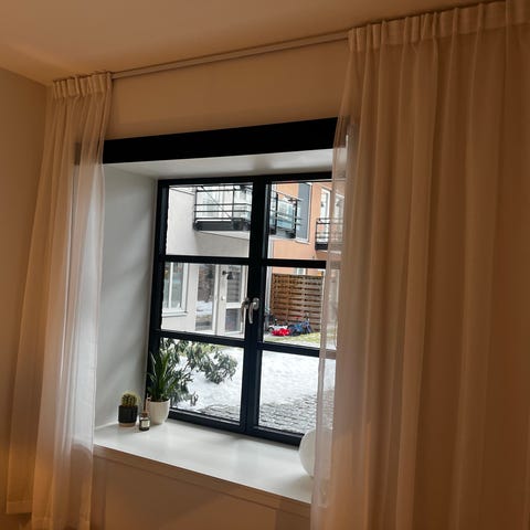 Litt usikker på lengden men er en god del lenger enn vinduet er høyt på bildet.