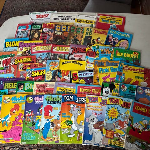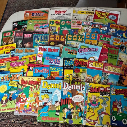 Fantomet x 2, Bessie, Seriebladet x2, Bob Crocett, Helgenen x 2, Illustrerte Klassikere, Dennis, Buster, Charlie Chaplin