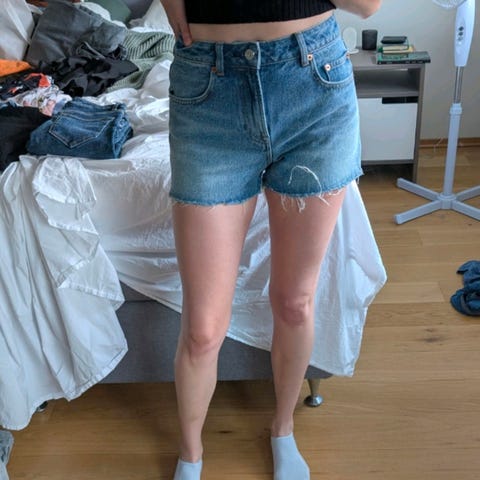 Topshop high waist mom jeans shorts. Str. L/40. Veldig behagelig materiale. Aldri brukt