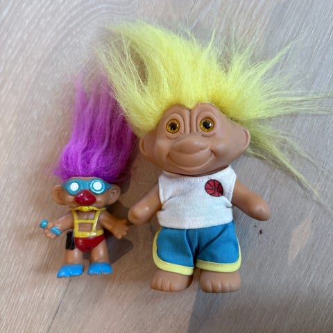 Håndlaget troll med detaljerte strikkede klær. Trollet har grått hår og er utstyrt med ski, noe som gir den et unikt preg. Perfekt som dekorasjon eller samlerobjekt. Den er ca. 15 cm høy og har et tradisjonelt design. Sender også som brevpost. Kom gjerne med bud.