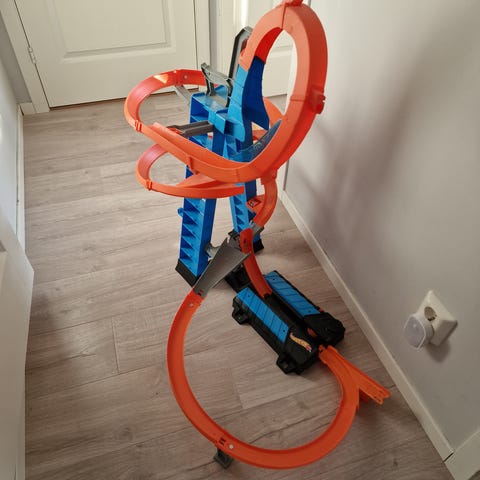 Kasse med stor bilbane som kan bygges som ønsket. 4 biler.
