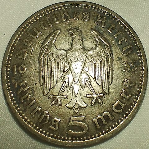 Tyskland 5 reichsmark 1935 A Berlin .900 sølv NY PRIS