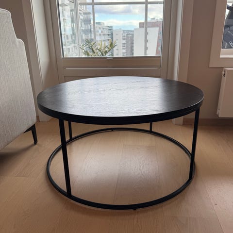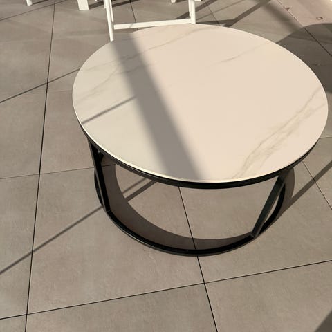 Superfint stuebord selges! Kontaktplast med kremfarget marmor på bordplaten.