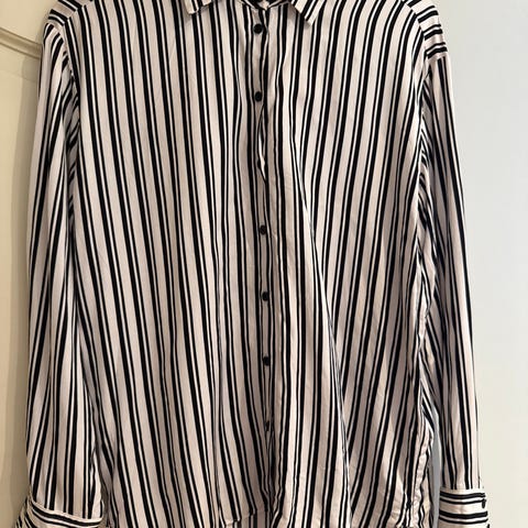 En overside skjorte i fargene beige/svart. Den er pent brukt. Så snygg at styla både åpen og stengd. 100% bomull.