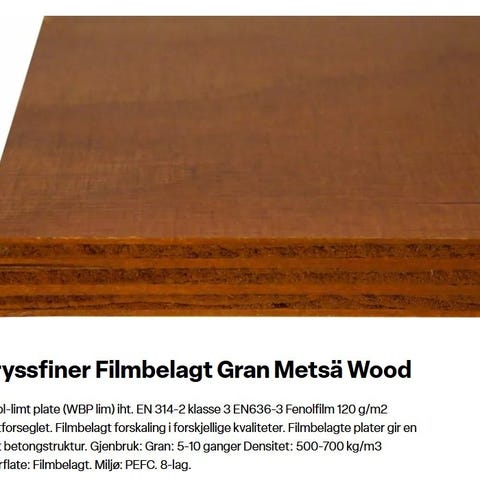 - Filmbelagt brun overflate (125g/m2) på begge sider og kantforseglet.
