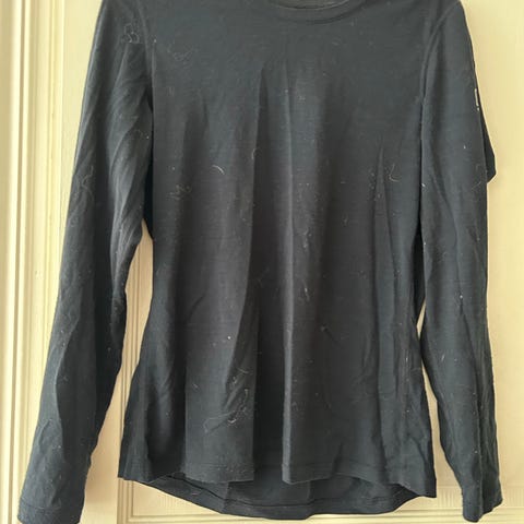 Grønn ulltrøye i 29% merinoull, 64% polyester og 7% nylon.