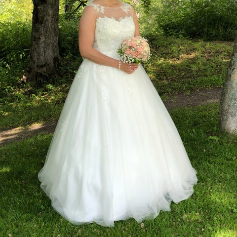 Nydelig skreddersydd brudekjole. Brukt en gang, renset og ser ut som ny. Ingen skader. Veldig lett, myk og behagelig. Skal passe til høyde 170-175 cm. Strl. S (36), ca. 70 cm livvidde. Det er bare å ta kontakt med meg for prøving☺️Kjolen kan prøves i Oslo🌺