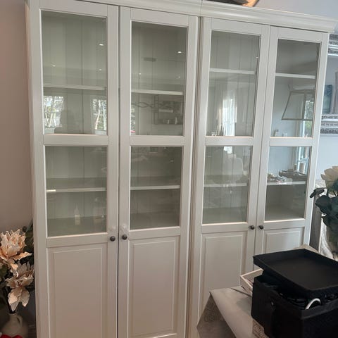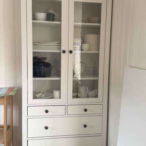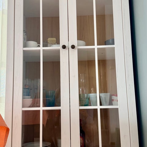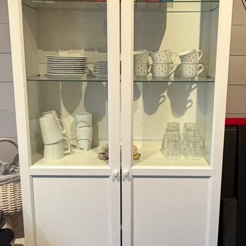 Pent brukt kjøkken overskap med glass dører og hyller. Selges da det blir for stort.