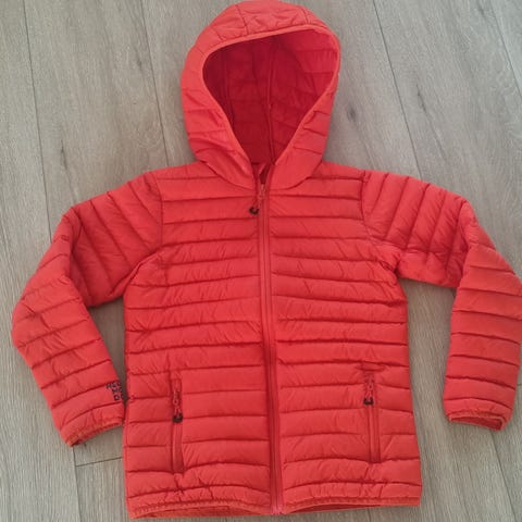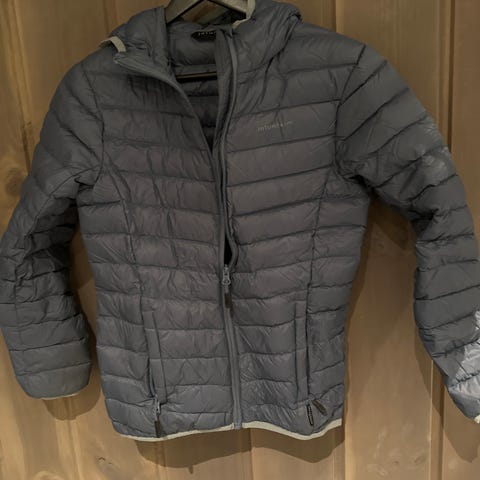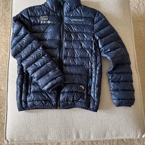 Tynn, blå dunjakke str. 12år selges.