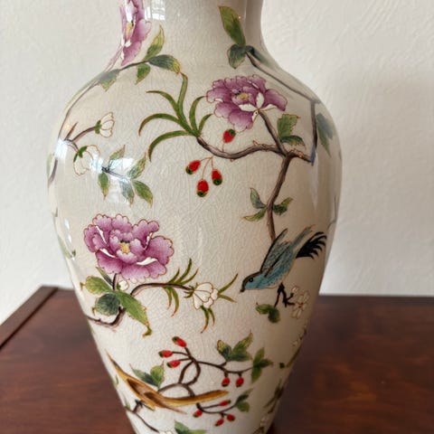 En stor grønn Hadeland, og en eldre malt vase. Den grønne kan gå for 350 kr, den malte for 1250