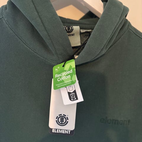En stilig og moderne grønn hettegenser med et unikt design. Den har en stor hvit logo trykket i midten, som gir et moderne og sporty utseende. Genseren har lange ermer, hette og en praktisk lomme foran. Den er i ny og ubrukt. Perfekt for de som ønsker å kombinere stil og komfort. Ta kontakt for en hyggelig handel!