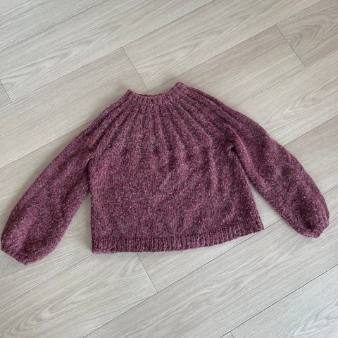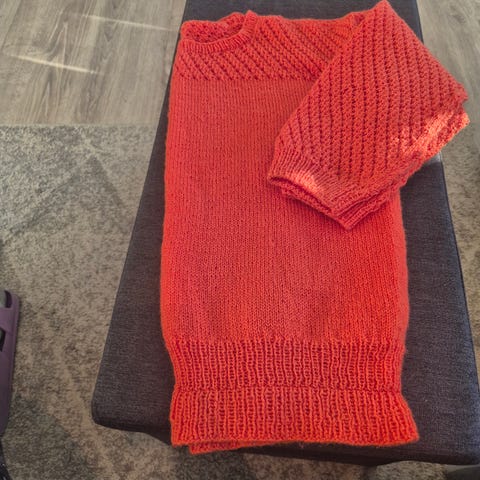 Nydelig rød hjemmestrikket genser med fint mønster selges❤️
