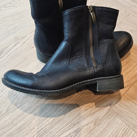 Svarte Tamaris ankel boots i ekte skinn, Str 36. Gummisåler. Pent og lite brukt. Normal på str.