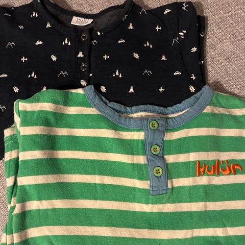 2 myke bodyer fra Hust & claire str 74. Vasket noen ganger, men mye bruk igjen. Selges samlet kr 100.