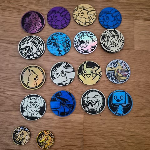 Pokemon coins og badge. I fin stand. Det mangler kun en beskyttelse på den ene bagden bak.
