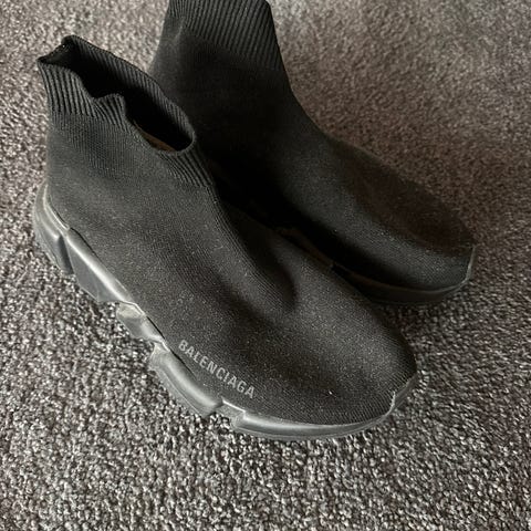 Balenciaga speed trainer sneakers i str 37 selges for 2000,- Passer str 38 og. De er pent brukt, men noen bruksmerker kan forekomme. Følger med dustbag, eske og bilde av kjøpsbekreftelse. De ble kjøpt på ssense😊