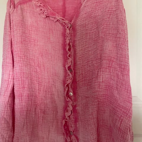 Love Forever sett m/tag. Litt skarpere og lysere enn på bildet. Mest riktig farge på første bilde. Veldig vanskelig å få frem riktig farge men vil vel si den er bubblegum farge. Usikker på størrelsen men passer S-L. Dersom du er stor i overkroppen (L/XL) sitter ikke genseren så løst lenger. Buksa er vid med snøring og baggy så denne passer mange. Liten flekk (penn?) på buksa se bilde. Tok en 20 min ekspressvask på 30 i forhold til flekken men må nok vaskes litt mer. Se siste bilde for flekk. Vises ikke godt kun hvis en ser etter det. Nypris kr 1.399,-. 95% bomull.
