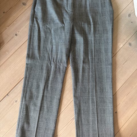 Vintage rutete bukse i blått og grått fra Impuls (mønsteret viser best på siste bilde). Merket med størrelse M, men passer bedre om du bruker størrelse XS/S etter dagens mål-livvidde er 74 cm, skrittlengde 25 cm og indre benlengde 79 cm. Laget av en blanding av viskose, polyester, nylon og elastan-god stretch i stoffet.