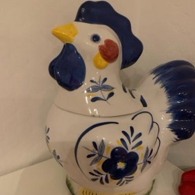 2 egg. 25 cm i omkrets. Sort grunn med hvit prikket dekor.