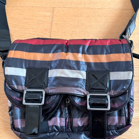 Sisley veske selges. Justerbar skulderreim som kan tas av. Bredde ca 32 cm, høyde ca 24 cm. Slitt look ( skal være slik).