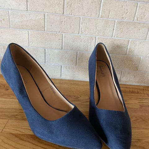 Vintage Bally Tricia pumps i navy blå med gulldetaljer. Made in England, og kjøpt i London på 80 tallet. Str uk 7,5, som skal tilsvare str 41, men innermål er ca 26,8 cm, som skal tilsvare 42. Helhøyde ca 5 cm