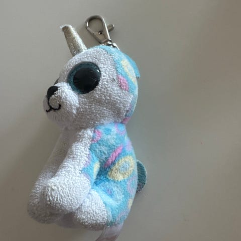 Søt delfin fra Dyreparken med hempe til å henge over seng eller stellebord.