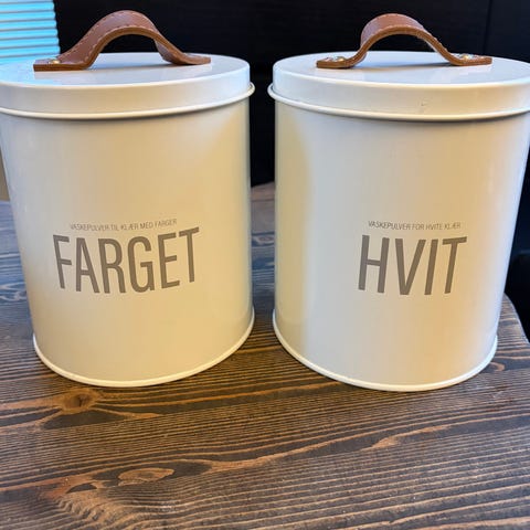 Selger 2 vaskepulver bøtter fra Kremmerhuset, begge følger med skje.