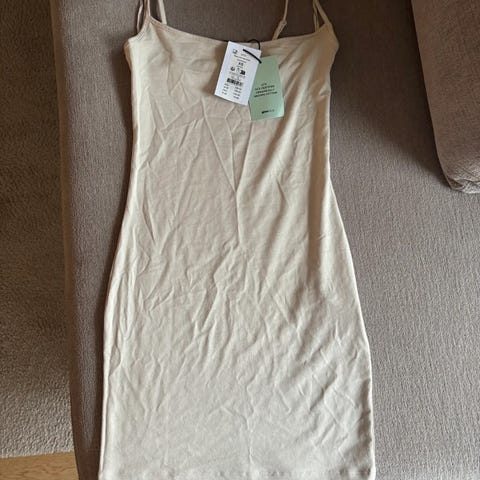 Kjempesøt kjole i ribb med stretch. Fin krage. Langermet.