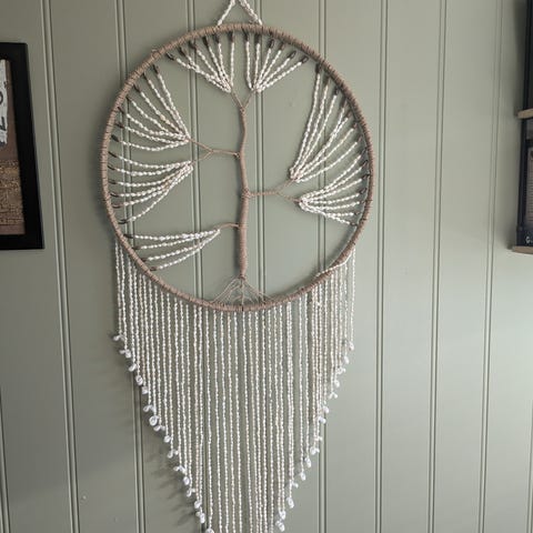 Selger nydelig veggpynt i bohemsk stil som vakkert kler de fleste hjem! Tørkede strå og blomster bundet sammen i herlig makramé!