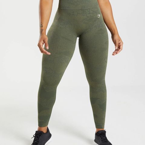 Helt Ny! Gymshark Adapt Camo Seamless Ribbed Leggings - Winter Olive/Soul Brown