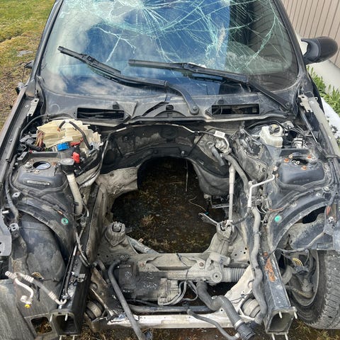 Frontlykter, støtfanger foran, dør venstre foran, dør bak og foran høyre, skjerm foran høyre og venstre, speil venstre og panser: Defekt.