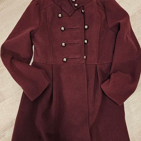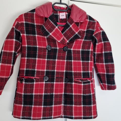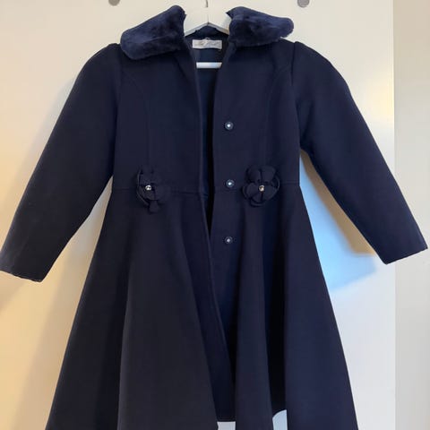 Pent brukt, str 5 år, pen og fyldig myk flece med lett fôring. Dekorative knapper. Kjøpt i England, så du finner kanskje ikke maken til i Norge. Vi har brukt den fra høst til vinter, den er ganske varm. Kan sendes mot porto 80kr.