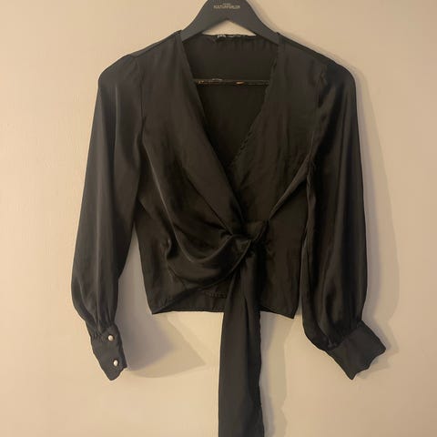 Bluse i «silkestoff» bånd som er med kan brukes rundt midjen. Meget behagelig på passer xs-m