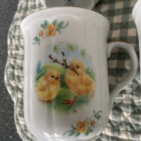 Selger et meget pent påskeservise fra Firkløveren designet av Barbro Rydholm