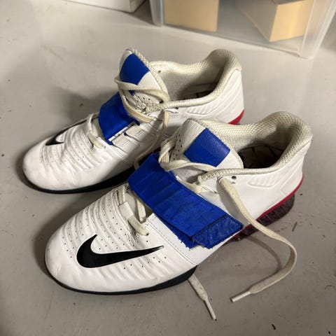 Brukte Reebok vektløftesko. Størrelse 40. Vært veldig fornøyd med skoene. Er ett lite rift inne i skoen. (Se bilde). Ikke noe jeg selv har lagt merke til når jeg har brukt de.